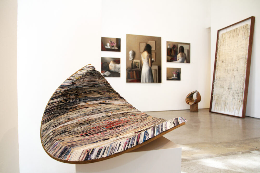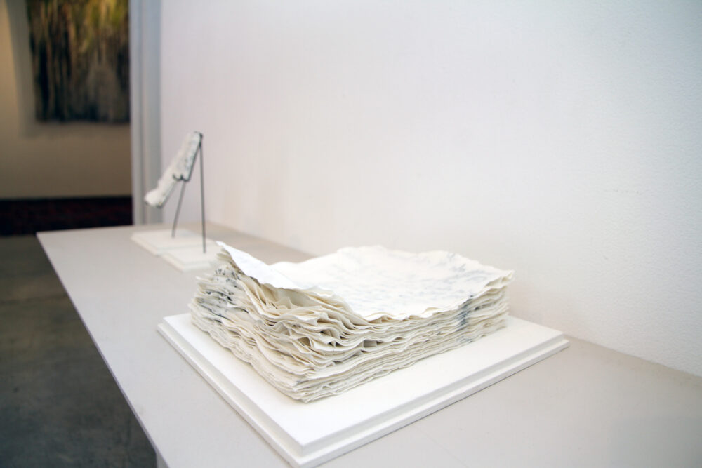 Carmel Ilan engages in the deconstruction of the book, changing its meaning and giving the material new use and form. Her work creates a direct connection to the spirit of “Soft Cover”- recycling, renewal, and rethinking the memory embedded in the page and material.