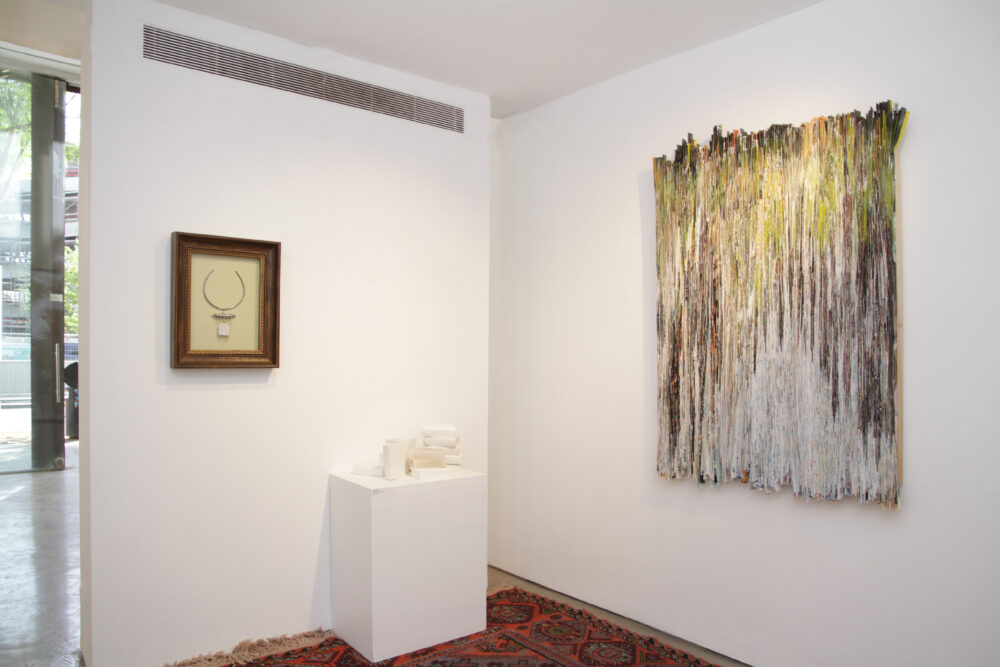 In delicate and fragile lines, Ayala Tsur shapes porcelain into fine book pages that appear as remnants of text or prayer preserved from disappearance, echoing the desire to restore memory to the material and emotional weight to the word in the exhibition.