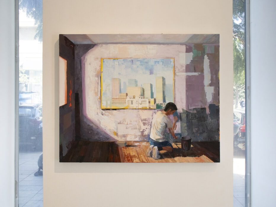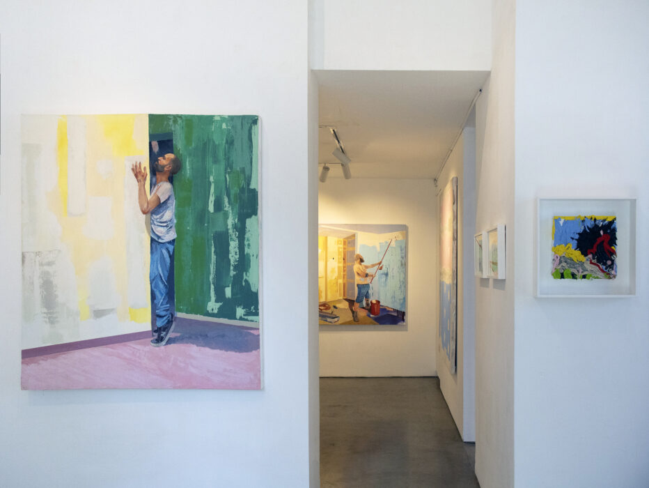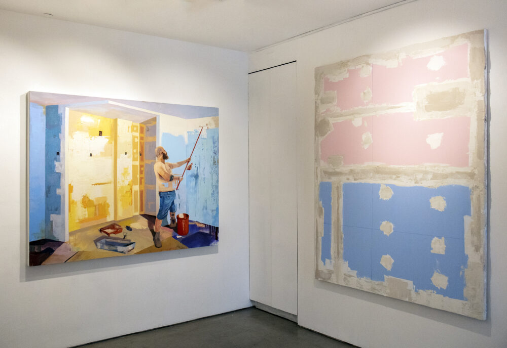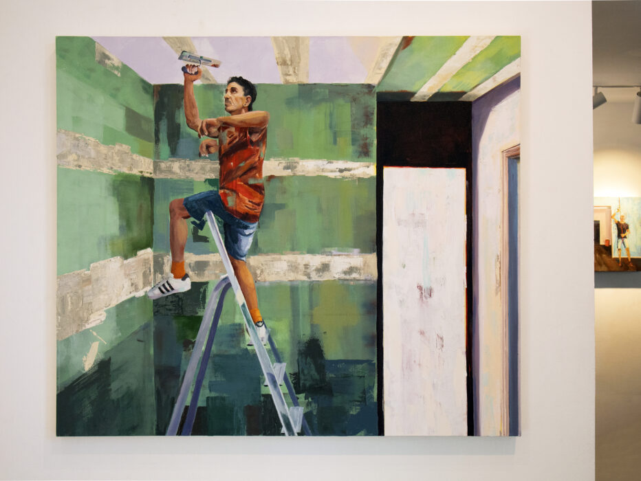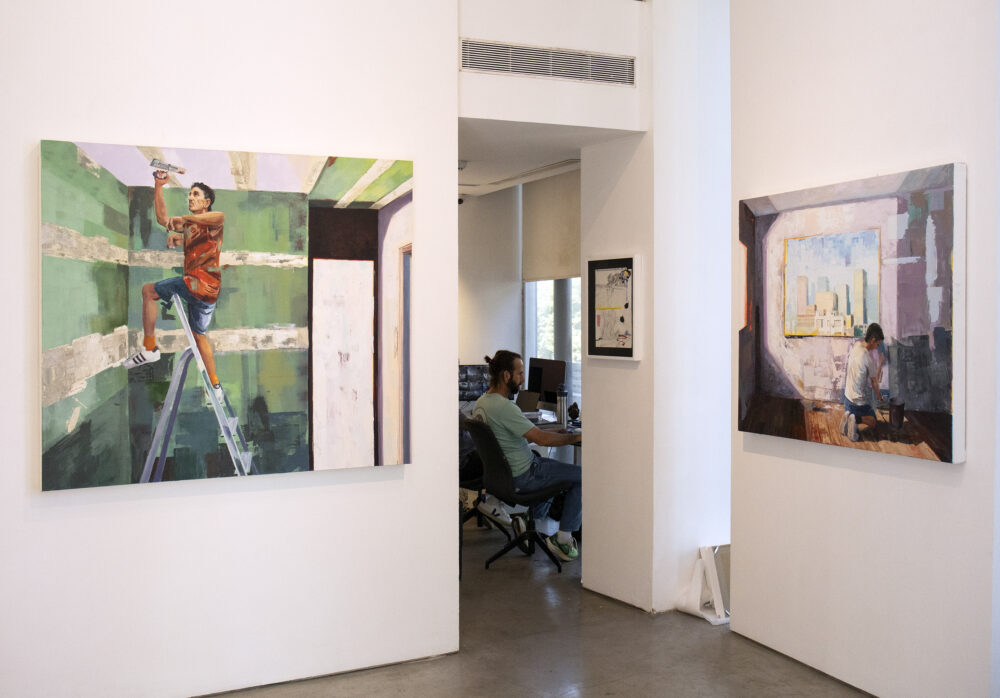 Rubi Bakal in his first exhibition at Zemack expanded on his series that documented hostage families painting, renovating and patching damaged walls in home settings.