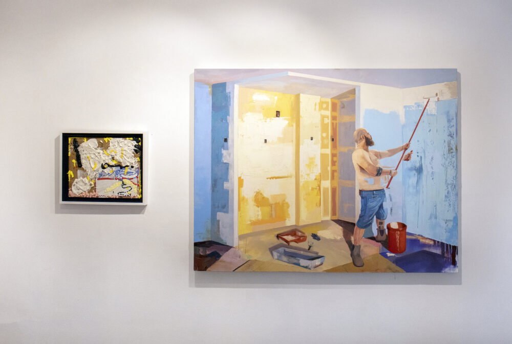 Together, Kislev and Bakal build a shared landscape of construction. One sculpts with paint from the ruins of the home, thus rebuilding it; the other studies through paint the craft that allows its building. Their dialogue transforms the exhibition space into a site of construction and repair. The walls bear the traces of others- workers, painters, survivors- each engaged in the quiet art of mending a broken “home.”